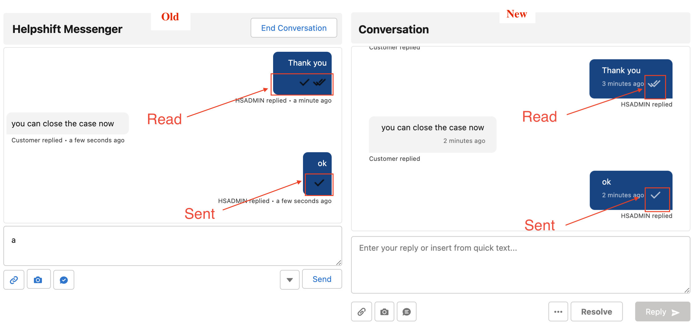 - Send/Read receipts similar to Helpshift messenger